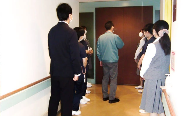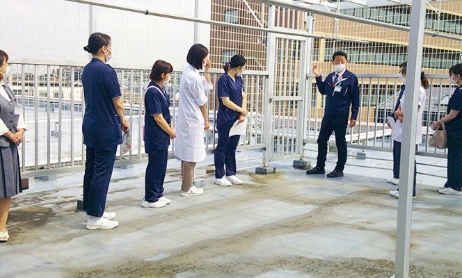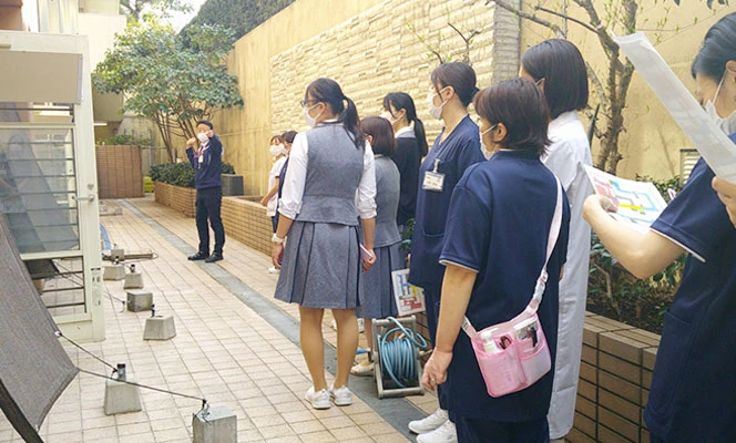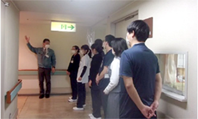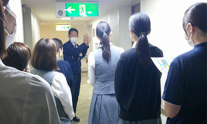 避難経路の確認。災害時対策はスタッフの重要な心得。