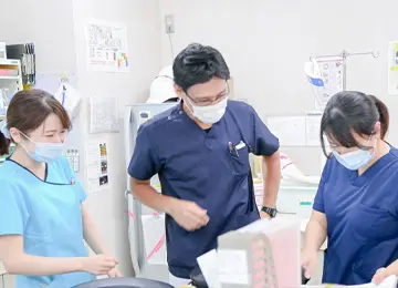 透析部門看護師は、常勤看護師、非常勤看護師、子育て中で短時間勤務を行っている看護師など、勤務形態が多様です。それぞれが日々役割を持ち、業務に取り組んでいます。