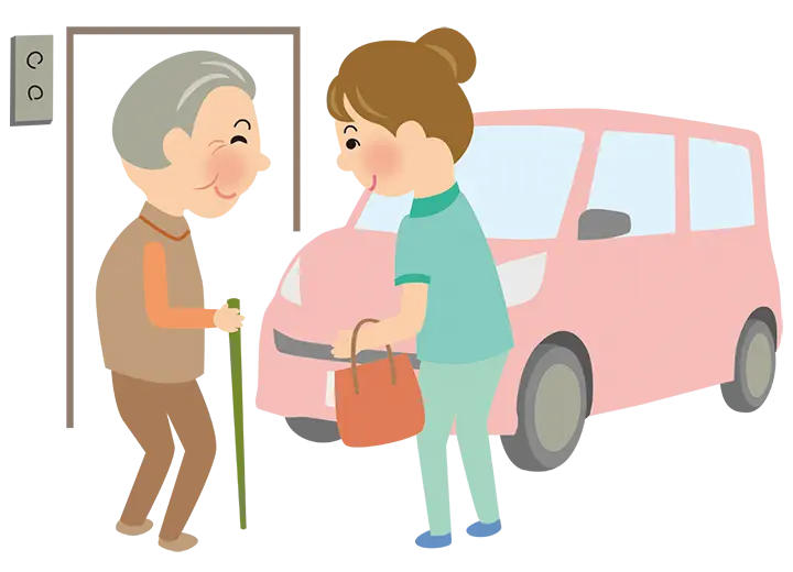 患者様の通院のご負担を軽減する為に、ご自宅から透析室までドアtoドアの通院送迎サービスをさせて頂いております。