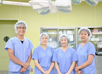 手術室は2部屋で、透析血管外科・腎臓内科、外科の手術を行っています。最近ではVAトラブルの受け入れ増加により、透析血管外科の手術が多くなっています。兼任での勤務は慌ただしいこともありますが、外来と協力し日々対応しています。