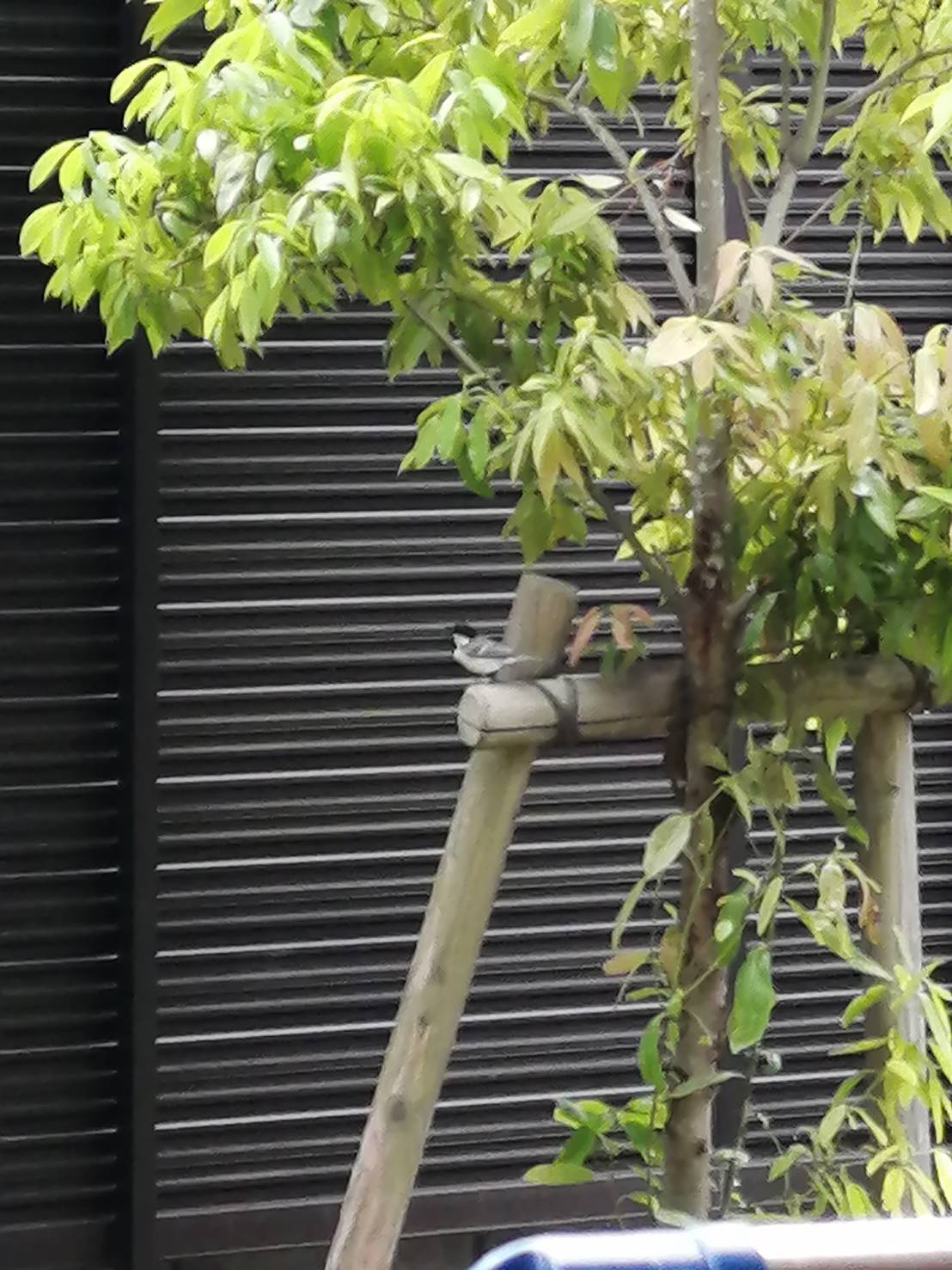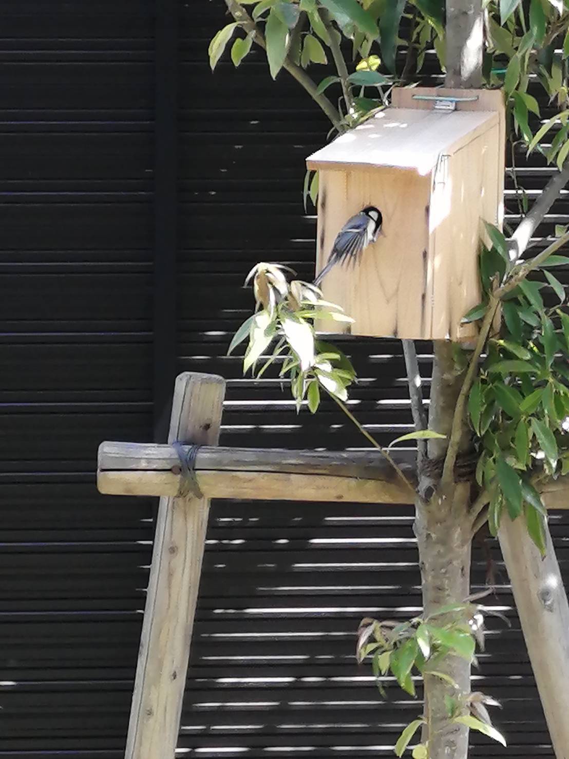 4月初め、孫が手作りした巣箱にシジュウカラがやって来ました。